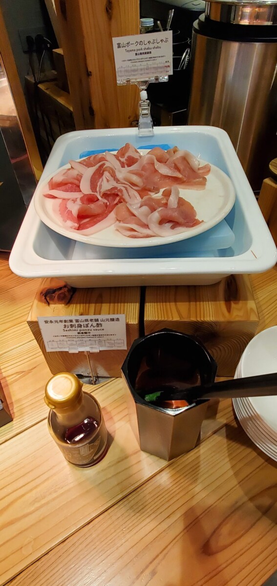 はい、ドーン!富山ポークのしゃぶしゃぶです。朝からしゃぶしゃぶ、良いね!