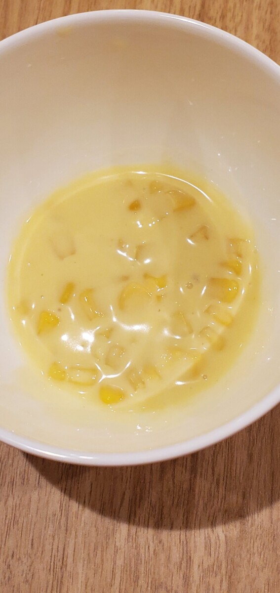 初めて見ました。こんなにコーンの粒が多いコーンスープ。
