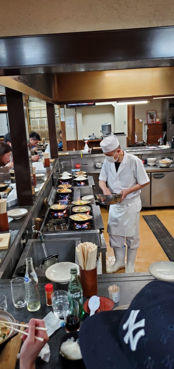 活気のある厨房では年配のベテランが一心不乱に鍋を温めています。