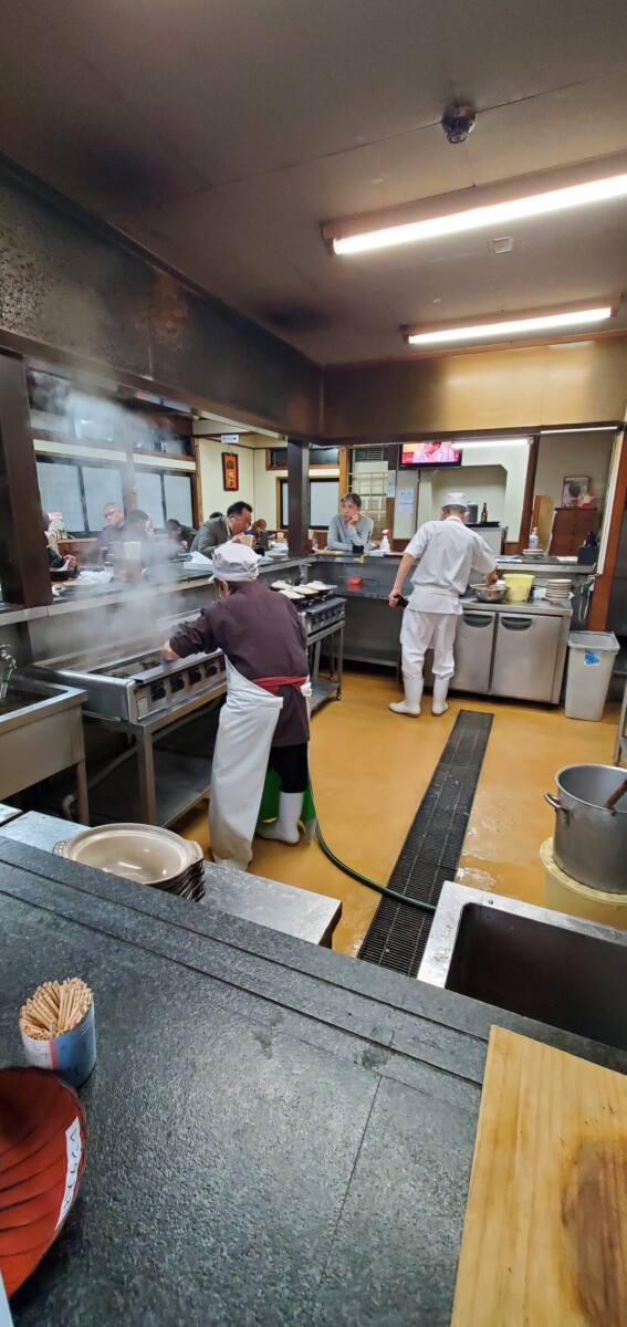 そして洗い場のおっかさんが元気よく作業に勤しんでいます。