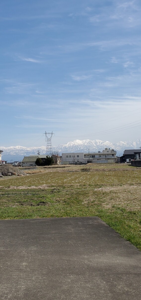 少し郊外に足を運びました。どうですか?のどかでしょ?立山連峰を背に畑ですよ畑。