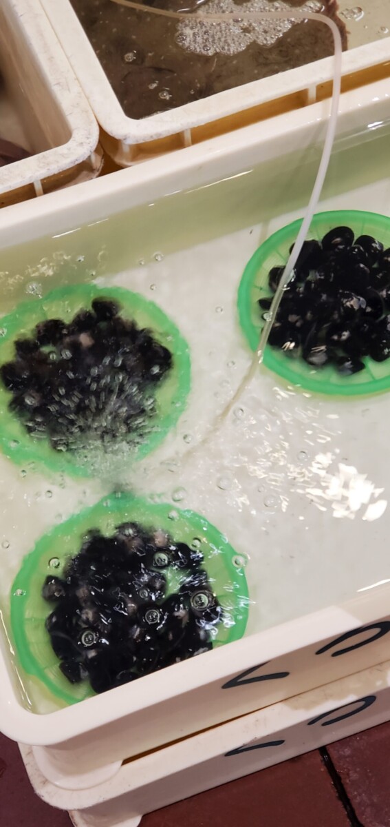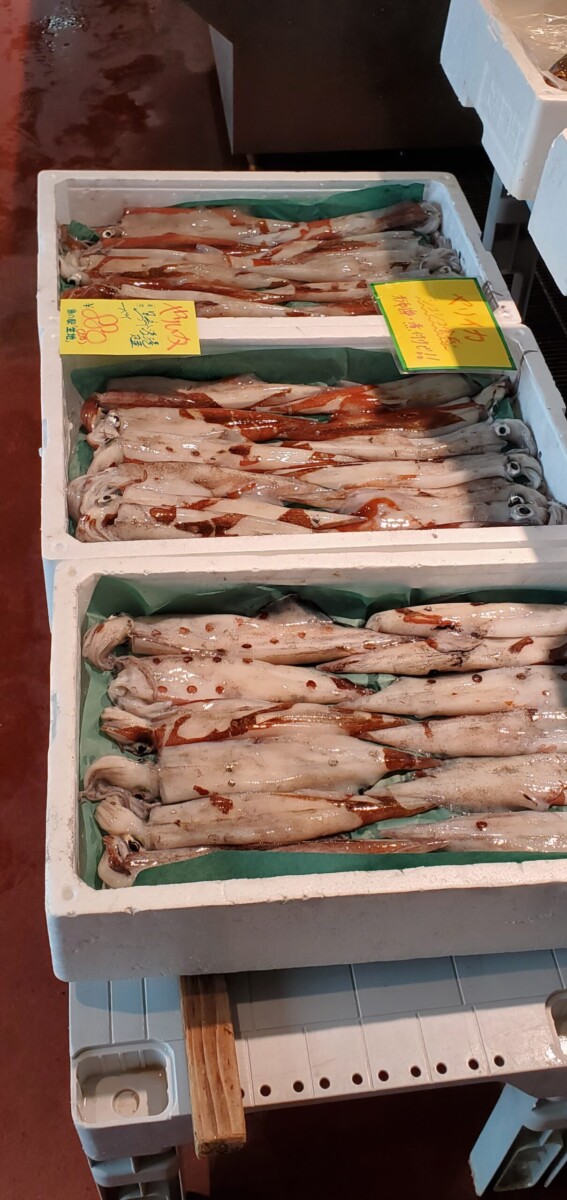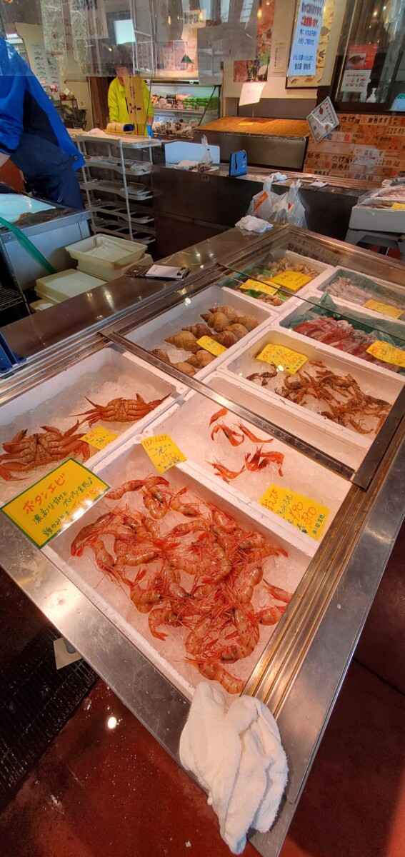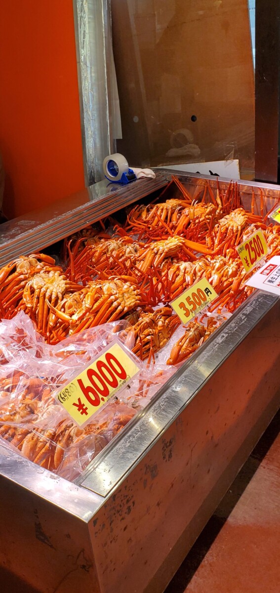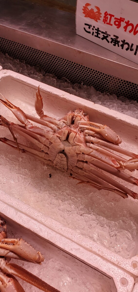 今日は魚の入荷が少なめだったみたいですが、紅ズワイガニや本ズワイガニが並べられています。