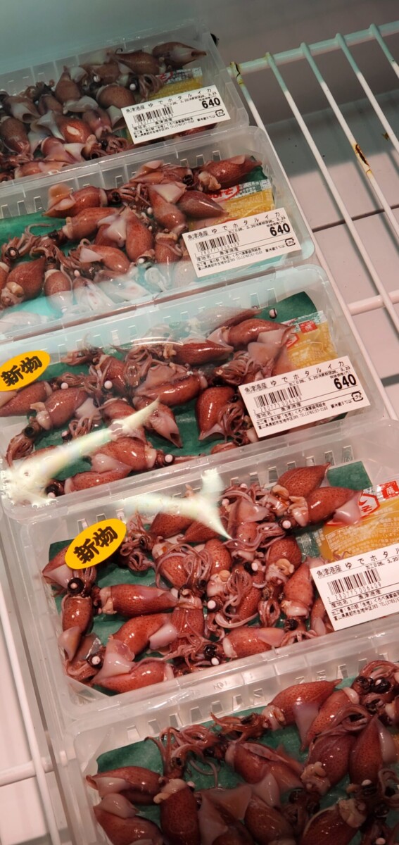 富山の名産ホタルイカ。これお味噌美味しいですよね。特に富山産はふっくらとよく肥えている。